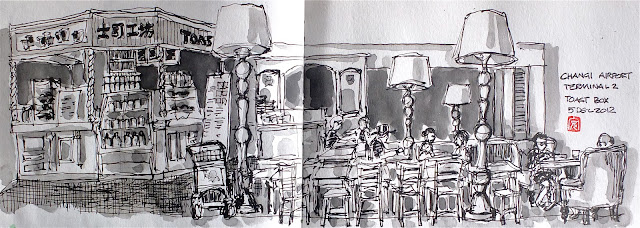 Tiong Poh Road Coffee Shop - Sketch on pre tea stain paper with Hero pen & ink.