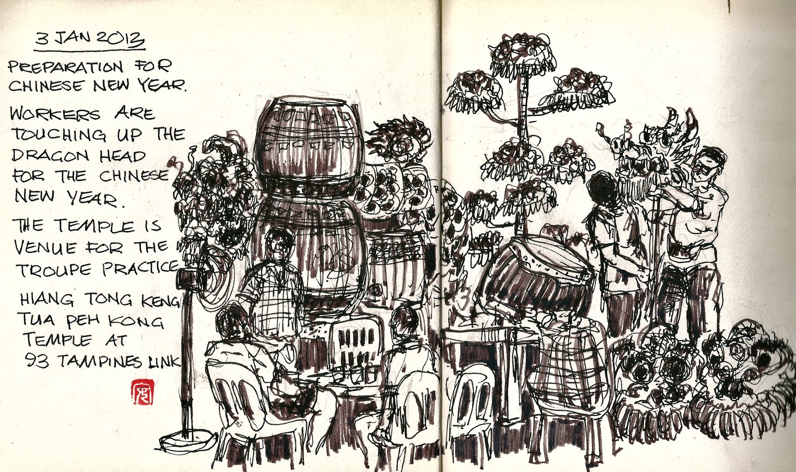 Recreation Corner at Tampines St 41 - Sketched with Pens on pre stained paper.